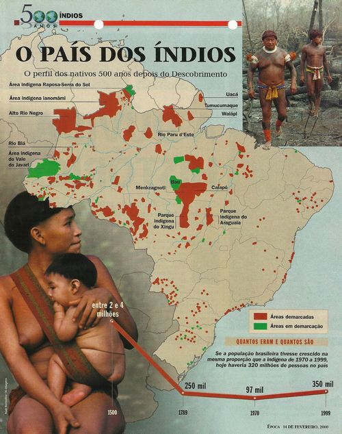 Para os índios, o caminho é garantir a sobrevivência econômica das aldeias e diminuir a dependência da Funai. “Sob o manto da proteção, nós nos tornamos inválidos”, diz o índio Marcos Terena. Passados 500 anos de convivência litigiosa, o antigo dono do país continua a ser pouco mais que um desconhecido. Podem ser suicidas, como os guaranis-caiovás. Ou então empresários de sucesso, como os caia pás. Um índio caiapó, Paulinho Paiakan, é tratado como selvagem e estuprador e ao mesmo tempo serve de exemplo como um empreendedor que respeita o meio ambiente.