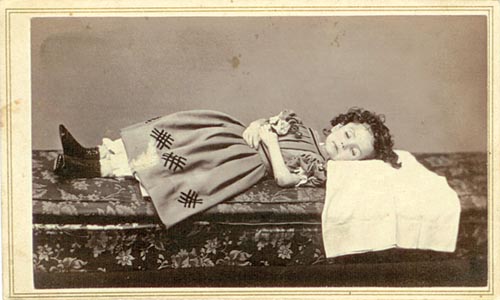 No final do século XIX, quando a fotografia se tornava mais acessível e popular, o hábito de fotografar mortos tornou-se relativamente comum. Esse tipo de fotografia, vista hoje como algo proveniente de um filme de terror ou um hábito de mau gosto mórbido, tinha na época a função de facilitar o luto, de criar uma recordação palpável, fiel e permanente do familiar falecido. Alguns fotógrafos viraram especialistas em captar tais registros, preparando o cenário e cuidando da maquiagem dos cadáveres para que parecessem vivos.