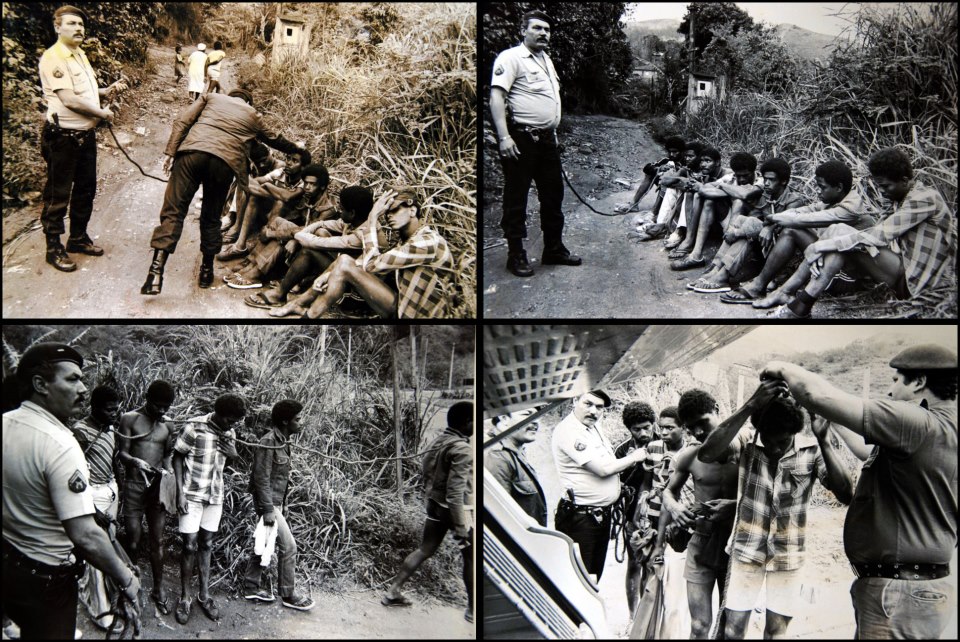 Sequência da qual faz parte a icônica foto que o fotojornalista Luiz Morier realizou em 1983. O flagrante mostra seis moradores negros de uma comunidade sendo presos por um PM, amarrados pelo pescoço como escravos humilhados. Depois foi constatado que todos eram trabalhadores e não possuíam envolvimento com ilegalidade. A famosa foto intitulada “Todos negros” (a terceira nessa sequência) correu o mundo e lhe rendeu o Prêmio Esso de fotografia de 1983.