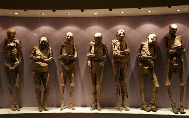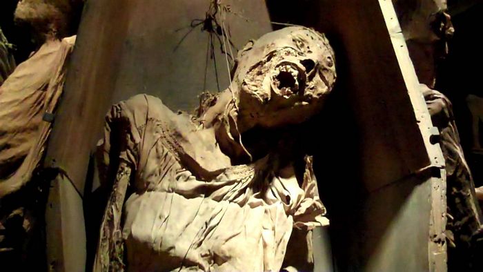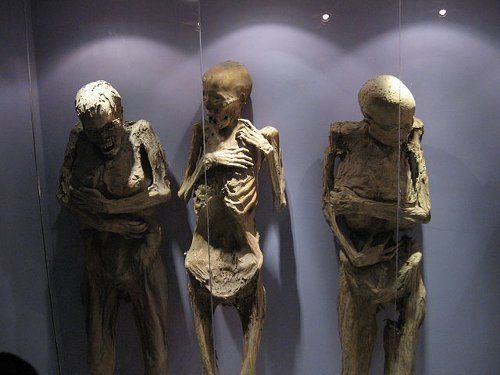 Hoje as tenebrosas múmias estão em exibição num museu.