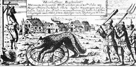 Em 1685, na cidade bávara de Ansbach (atual Alemanha), um lobo aterrorizava a população que acreditava que o animal era um ex-prefeito da cidade e o bicho foi caçado, morto e depois vestido com as roupas daquele que era acusado de ser a fera. A carcaça vestida do lobo ficou em exibição na cidade.