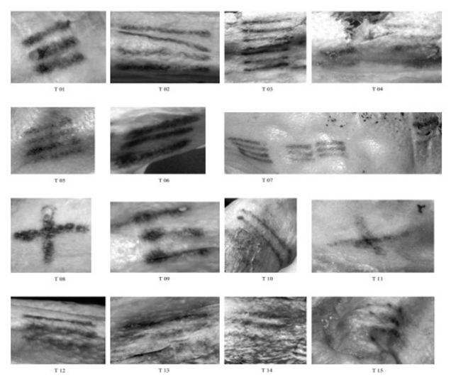 Fotos e análises de imagens eletrônicas processadas por meio de softwares especiais permitiram a identificação das tatuagens que não puderam ser identificadas a olho nu.