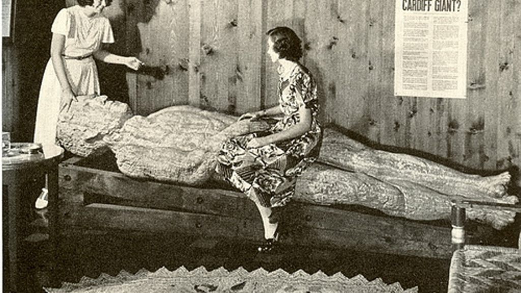 O Gigante de Cardiff tornou-se famoso a partir de sua “descoberta” em 1869 por trabalhadores que realizavam uma escavação. O “homem petrificado” media mais de 3 metros de altura e ficou em exibição atraindo pessoas que acreditavam que a estátua propositalmente colocada no local era, de fato, o que sobrou de um ser humano gigante. A fraude enganou muita gente e multidões viajavam para ver o colosso petrificado – pagando ingresso ao dono da fazenda onde ele foi “encontrado”. Muitos chegaram a acreditar que se tratava de uma criatura bíblica citada no Gênesis 6:04, onde está escrito: “Havia naqueles dias gigantes na terra; e também depois, quando os filhos de Deus entraram às filhas dos homens e delas geraram filhos (…)”. Na verdade era pura provocação por parte do autor da fraude, um ateu convicto, que realizou uma aposta que visava comprovar que fiéis levavam passagens bíblicas ao pé da letra. A brincadeira deu certo e o zombador chegou a lucrar mais de 37 mil dólares ao vender o objeto da fraude para uma instituição. A fraude continuou convencendo muitos crédulos mesmo após cientistas atestarem que o suposto gigante era uma escultura recente.