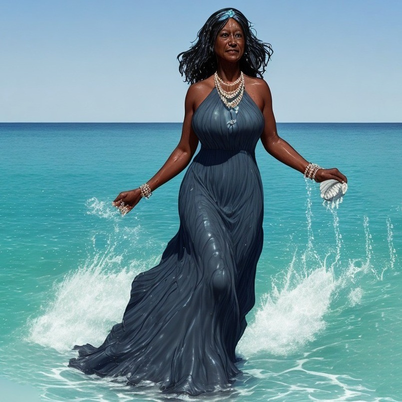 Sou a divindade das águas salgadas, dos mares profundos e do mar que circunda o mundo. Nas ondas do oceano, repousa minha essência, radiante e poderosa. Como mãe e protetora, acolho os marinheiros, pescadores e todos aqueles que dependem das águas para sobreviver. Minha energia é suave e tranquilizadora, capaz de acalmar tempestades e oferecer segurança a todos que se aventuram por minhas vastas extensões.