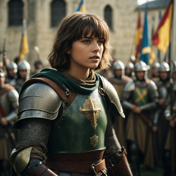 Joana, ainda menina, presenciou as ações dos ingleses em sua cidade natal, Domrémy, no noroeste da França, e assimilou os sentimentos da população local. Segundo a tradição, aos 13 anos, ela teria visto São Miguel Arcanjo e, posteriormente, as santas virgens e martirizadas Margarida de Antióquia e Catarina de Alexandria. Somado às visões, antigas profecias populares falavam de uma donzela guerreira que surgiria para libertar o país. Influenciados por esses elementos místicos e pela determinação de Joana, muitos começaram a acreditar que ela era a anunciada salvadora. Ela, então, buscou convencer os nobres dessa predestinação. Em 1429, conseguiu encontrar-se com o herdeiro francês, prometendo assegurar sua coroação. Depois de ser integrada ao exército, foi enviada a Orléans. Na linha de frente, mesmo sem treinamento, os franceses conquistaram uma vitória importante com a retirada dos ingleses, ampliando a popularidade de Joana, agora chamada de A Donzela.