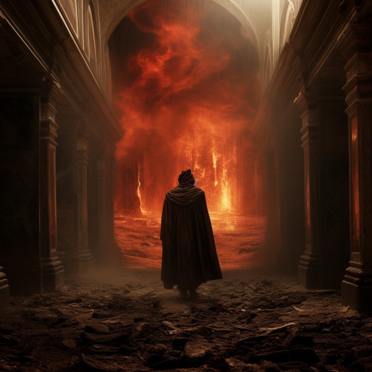 No Inferno, ele descreve uma viagem através dos nove círculos do submundo, cada um reservado para diferentes tipos de pecadores e seus respectivos castigos. Na entrada deste ambiente de trevas, a infeliz alma é prontamente advertida por um aviso mordaz: “Abandonai toda a esperança, vós que entrais”. Este sombrio prenúncio serve para preparar Dante, e o leitor, para os horrores e punições que ele testemunhará nas profundezas do Inferno. É uma introdução apropriada à visão de Dante do inferno como um lugar de eterno sofrimento e desespero.