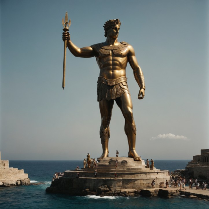 Esta imponente estátua de Hélio, o deus grego do sol, foi construída por volta de 280 a.C. na ilha de Rodes. Com cerca de 30 metros de altura, ela se erguia sobre um pedestal na entrada do porto, servindo como um farol para os navios que se aproximavam.