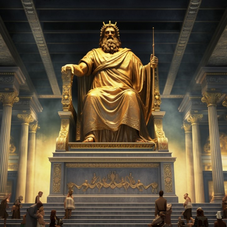 Criada por volta de 435 a.C., esta era uma imponente estátua do deus grego Zeus, feita de marfim e ouro. Ela se encontrava no templo de Zeus, em Olímpia, e possuía aproximadamente 12 metros de altura.