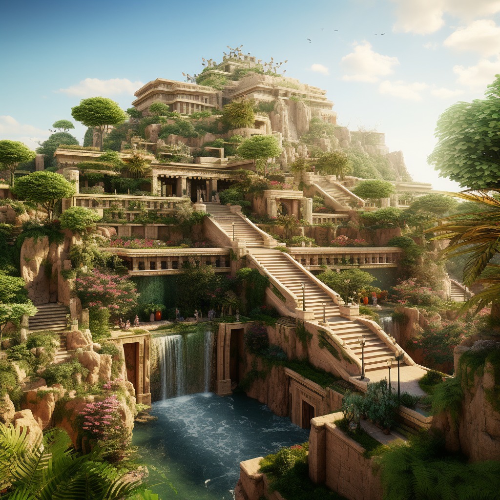 Localizado na antiga cidade da Babilônia, próximo ao atual Bagdá, este jardim é descrito como uma série de terraços elevados que pareciam flutuar, um acima do outro. Construído por volta de 600 a.C., acredita-se que a obra tenha sido um feito da engenharia antiga, com um sistema de irrigação avançado.