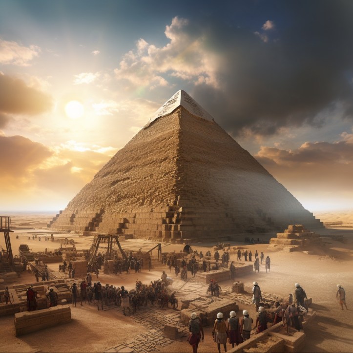 Construída por volta de 2570 a.C., esta pirâmide é a única das sete maravilhas que ainda permanece praticamente intacta. Servindo originalmente como um túmulo para o faraó Quéops, ela era composta por cerca de 2,3 milhões de blocos de pedra e tinha originalmente 146,6 metros de altura.