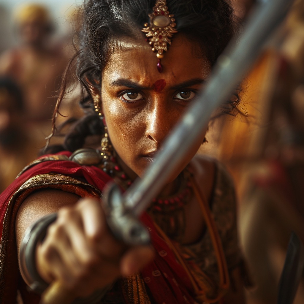 Nascida Manikarnika Tambe, em 1828, a nobre de formação e postura independentes que eram incomuns para uma mulher em sua posição aprendeu manejar espadas e tiro com arco, equitação e outras artes bélicas, além de ter recebido instruções acadêmicas. Depois de se casar aos 14 anos de idade com o marajá Raja Gangadhar Rao Newalkar, adotou o nome Rani Lakshmibai, uma homenagem à deusa hindu Lakshmi. A prodigiosa jovem rainha de Jhansi se envolvia nos assuntos de estado e de administração pública e virou uma pessoa amada pela população por suas qualidades como liderança carismática e justa.