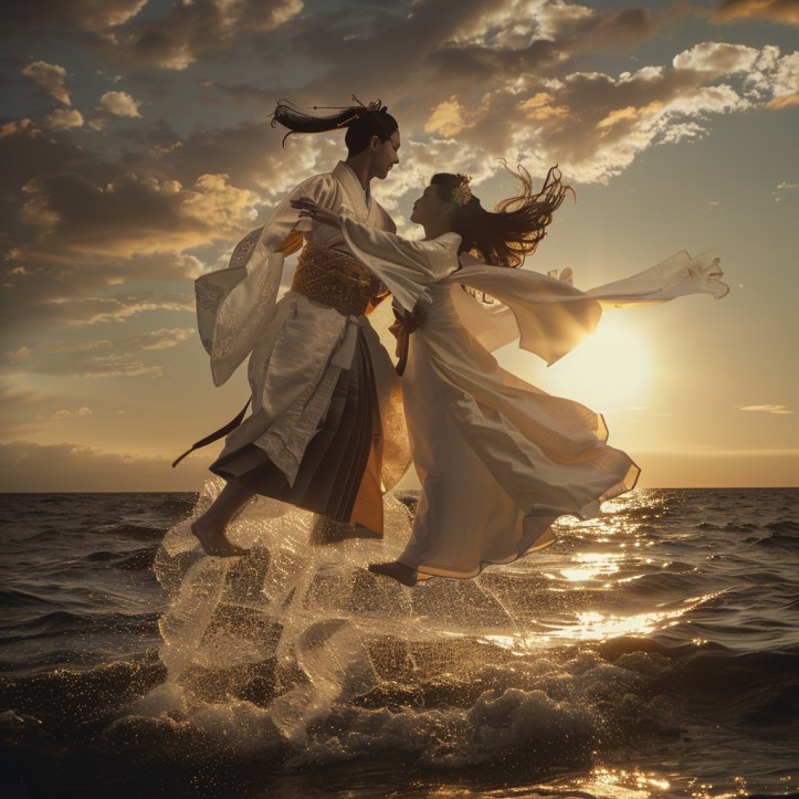 O mito de criação da tradição do xintoísmo no Japão é embalado por uma bela e trágica história de amor entre o casal divino Izanagi e Izanami.