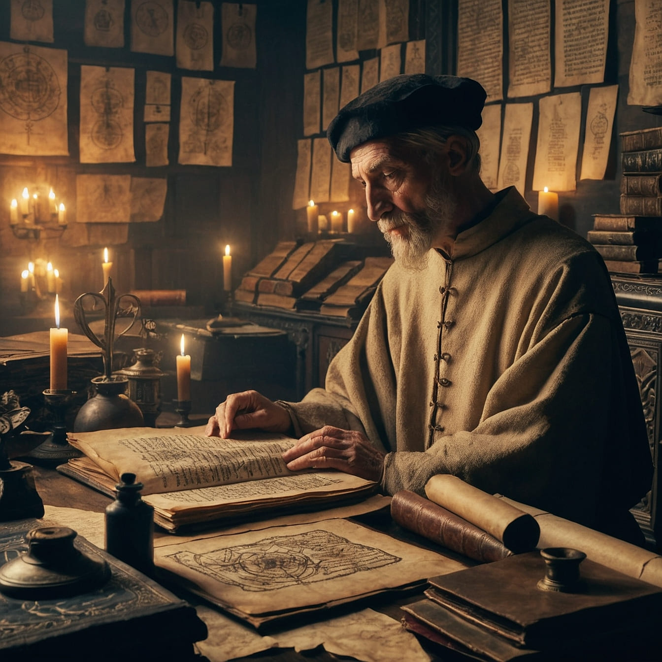 Um dos mais destacados nomes da alquimia medieval foi Nicolas Flamel, cuja fama envolveu realizações e mitos. Flamel nasceu por volta de 1330 em Pontoise, França, em uma família humilde. Pouco se sabe sobre seus primeiros anos, mas é reconhecido que ele foi um escrivão bastante ativo e respeitado em seu ofício. Nos tempos anteriores ao surgimento da imprensa, um escrivão lidava com a elaboração, reprodução e venda de documentação, obras literárias, religiosas e científicas produzidas de maneira manuscrita. O trabalho exigia habilidade, meticulosidade e talentos artísticos, proporcionando aos seus praticantes a oportunidade de aprender sobre muitas coisas através do contato com os conteúdos dos materiais que lidavam em seus serviços.