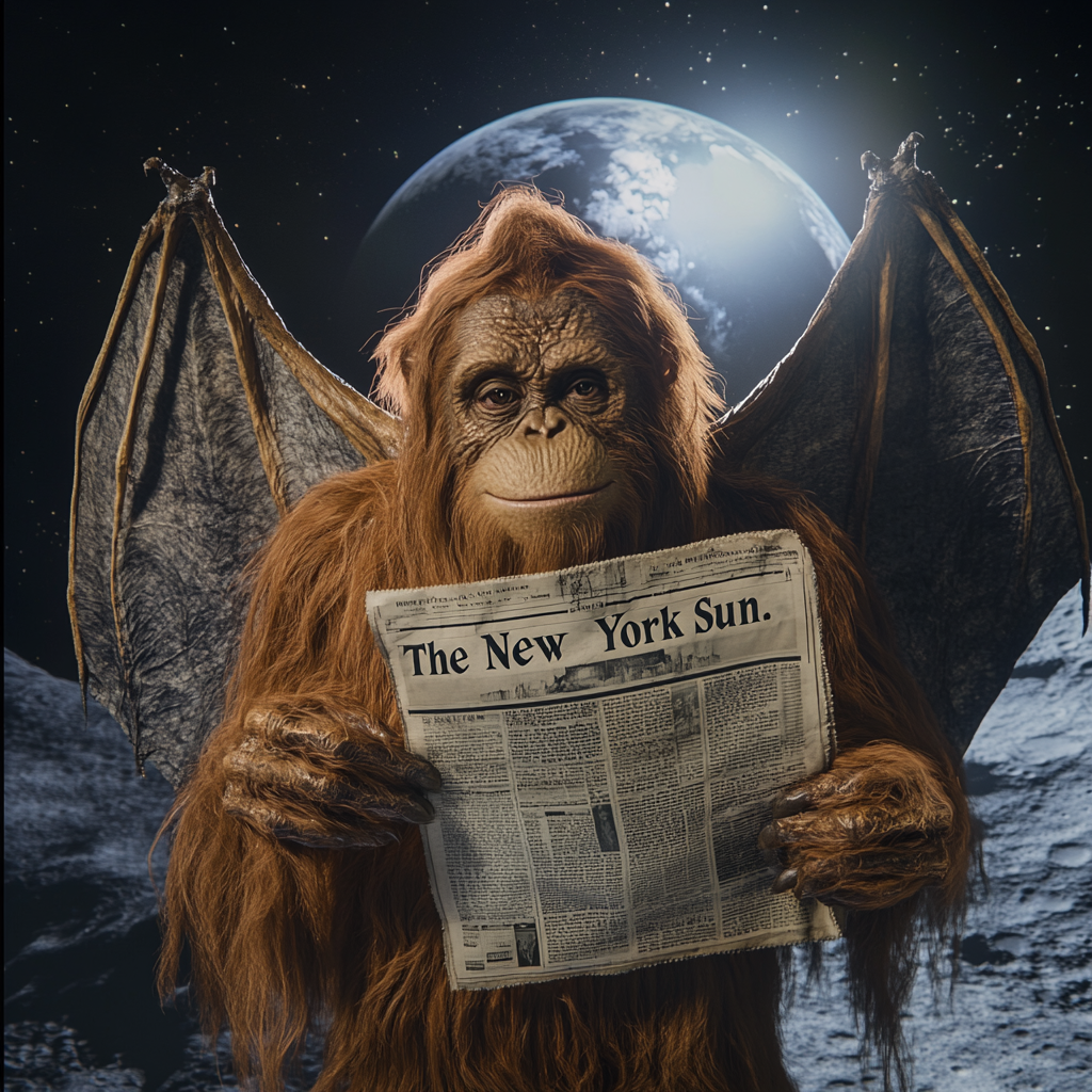 O repórter Richard Adams Locke, do jornal The New York Sun, publicou no jornal matérias sobre descobertas científicas espantosas sobre uma incrível sociedade identificada na Lua. As publicações eram pura invenção, mas a repercussão funcionou porque o autor recorreu ao emprego de termos científicos, elementos dos estudos astronômicos da época e até citou falsamente o prestigiado astrônomo John Herschel para validar a estranha narrativa publicada.