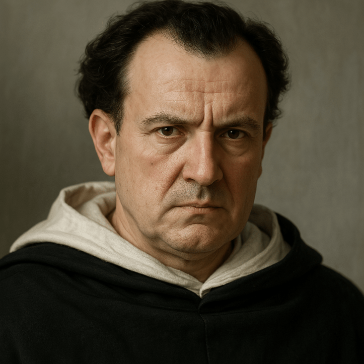 Nascido como Giovanni Domenico Campanella em 1568, na pobre e rural Stilo, na Calábria — uma região então sob o domínio do Império Espanhol —, longe dos grandes centros culturais como Florença ou Roma. O sul de Itália era uma terra de contrastes, marcada pela opressão de nobres senhores de terras e por um fervor religioso intenso. Desde cedo, Campanella demonstrou uma inteligência prodigiosa e uma memória fora do comum, talentos que logo chamaram a atenção de um frade dominicano. Aos quinze anos, seguindo uma promessa familiar e em busca de educação, ele ingressou na Ordem dos Pregadores, adotando o nome de Tommaso em homenagem ao grande filósofo escolástico Tomás de Aquino. No entanto, o jovem que entrava no convento carregava dentro de si um espírito inquieto que logo se chocaria com a ortodoxia católica.